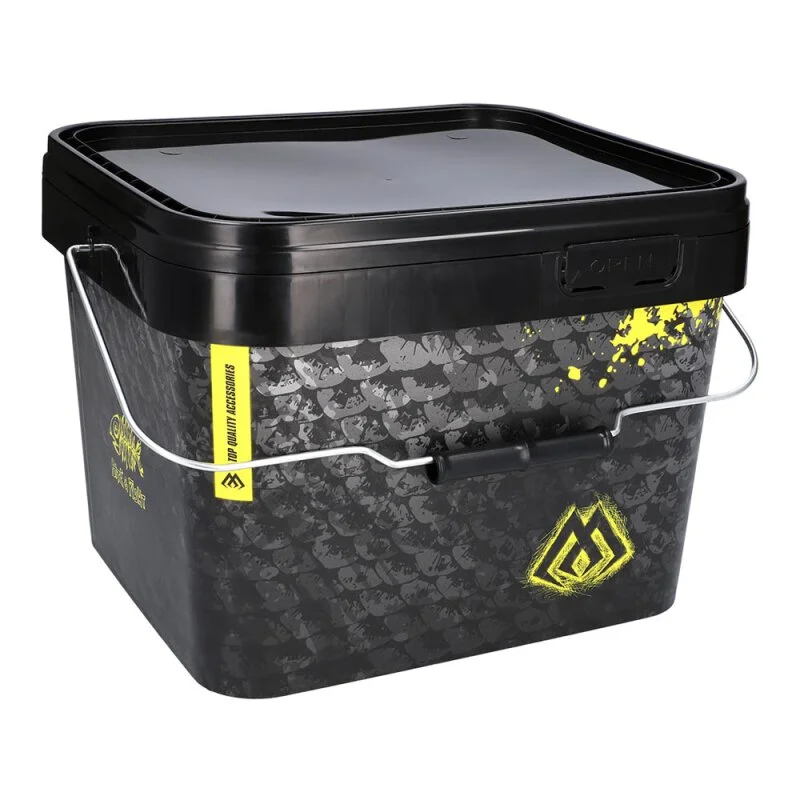 Vielseitiger Köder- und Angelködereimer. Hergestellt aus widerstandsfähigem Material, mit Deckel und Metallgriff. Mit einem Fassungsvermögen von 10 Litern und einer rechteckigen Form können Sie ihn leicht im Kofferraum Ihres Autos unterbringen.
