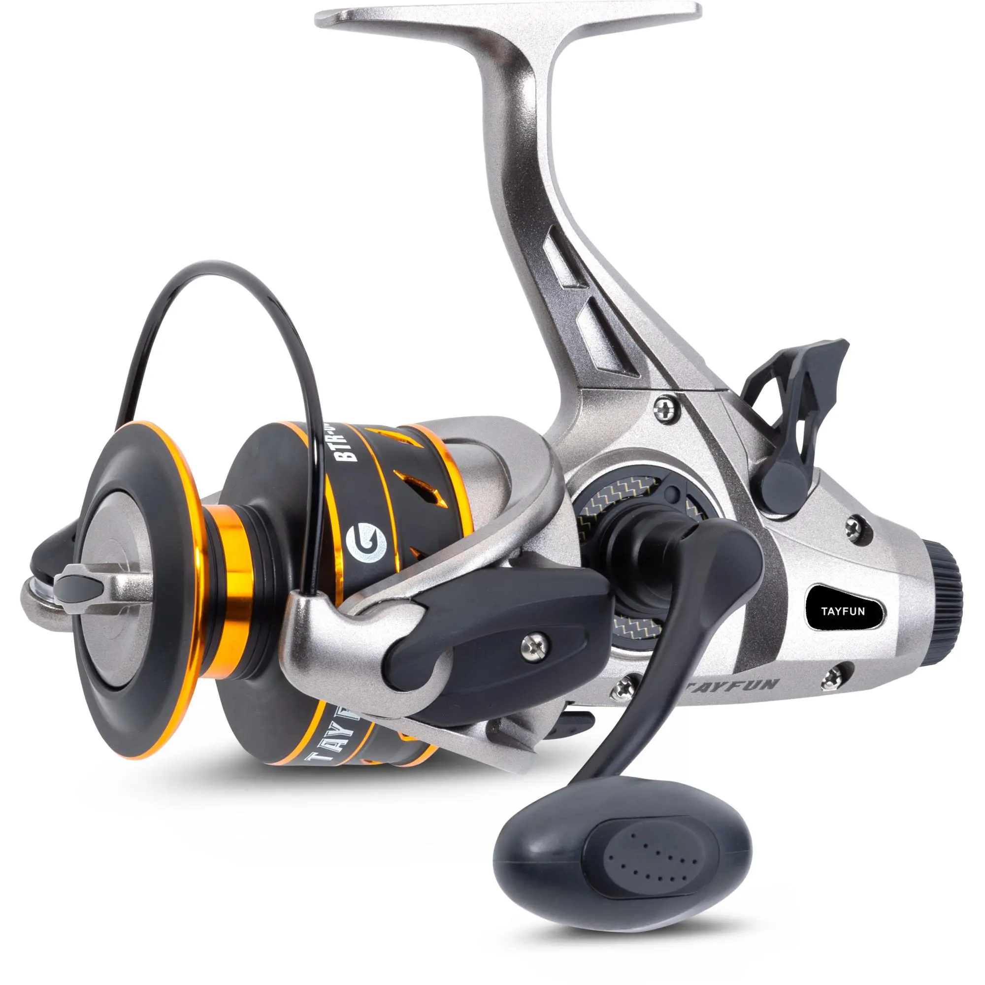 The Tayfun reel series is the result of weeks of meticulous precision work. It is characterized by a very nice design and reliable quality. A quiet, stable run, exact line laying and a precisely working freewheel are characteristics of the new Tayfun series. No matter what type of fish you are fishing for, you are dealing with a real all-rounder here. The reel series was equipped with a stable aluminum crank arm, an extra thick bail and an optically very attractive aluminum spool. Ratio: 5,5:1 on 3500 and 4500 models / 4,7:1 on 5500 and 6500 models
