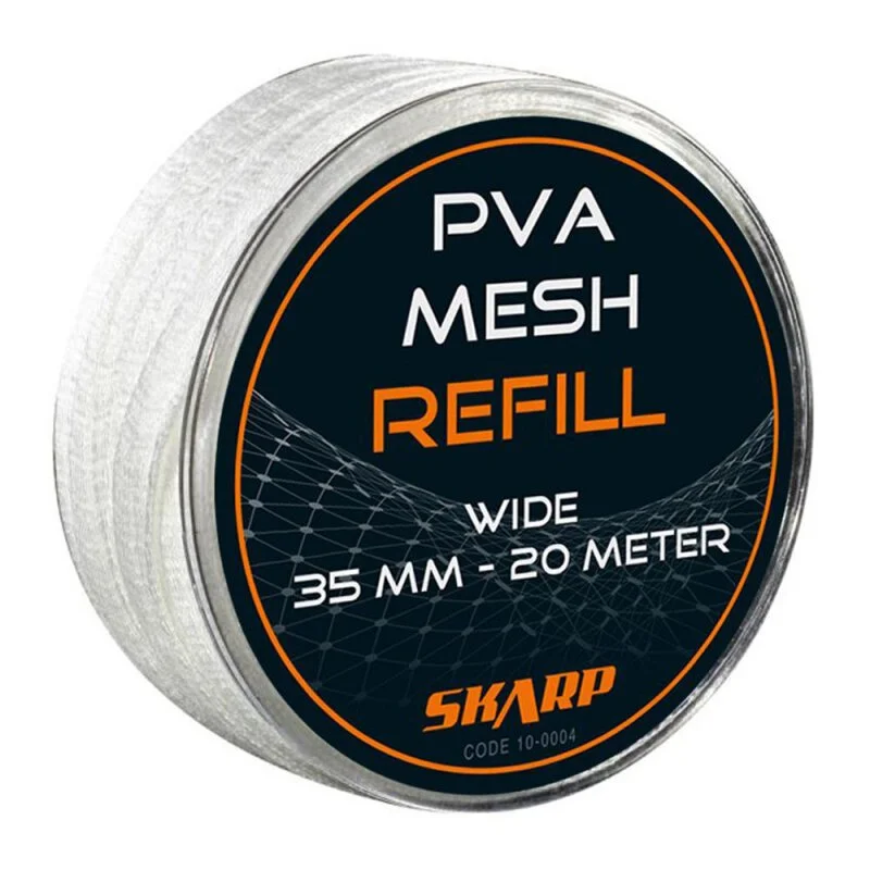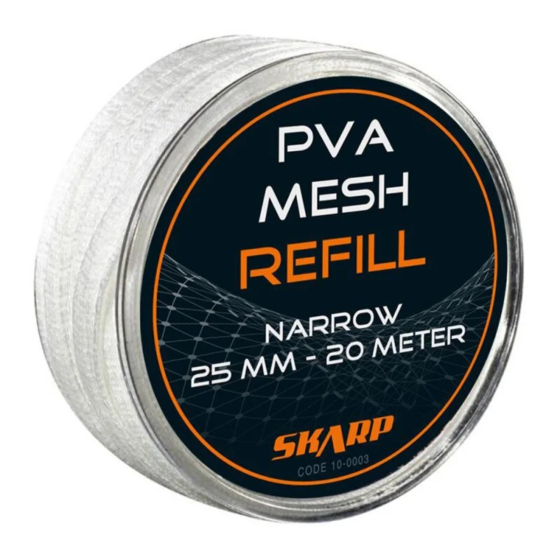 Nachfüllpack für das Skarp PVA Mesh Funnel & Plunger System. Die Lieferung erfolgt als durchegendes Stück auf einer Spule. Einfach im ganzen auf die leere Tube des aufgebrauchten PVA aus dem Funnel & Plunger System schieben und fertig.