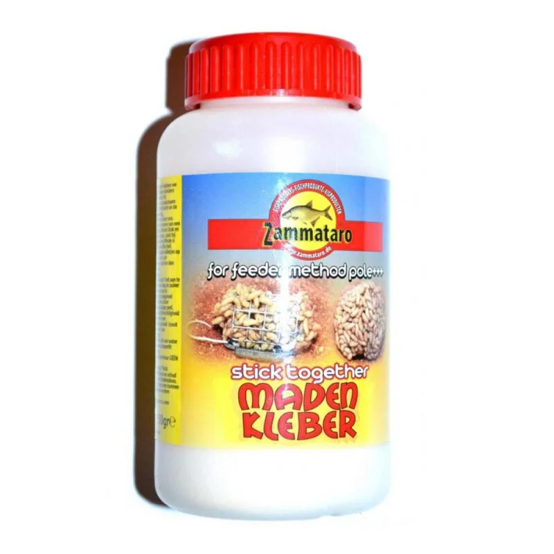 Von Michael Zammataros Madenkleber benötigt man nur ganz wenig um bereits eine vortreffliche Wirkung zu erzielen. Gerade beim Stippen und Feedern macht dieses Hilfsmittel außerordentlich Sinn, um Madenkugeln zum anfüttern zu verwenden. Idealerweise werden der Entfettung wegen die Maden einen Tag vor der Anwendung in Sägemehl gegeben und anschließend durch das Zammtaro Futtersieb vom Sägemehl gerennt. Dann kann das einwandfreie Zusammenkleben auf simple Weise vorgenommen werden.